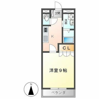 | 間取り | 1K(洋9) | 主要採光面 | 南 |